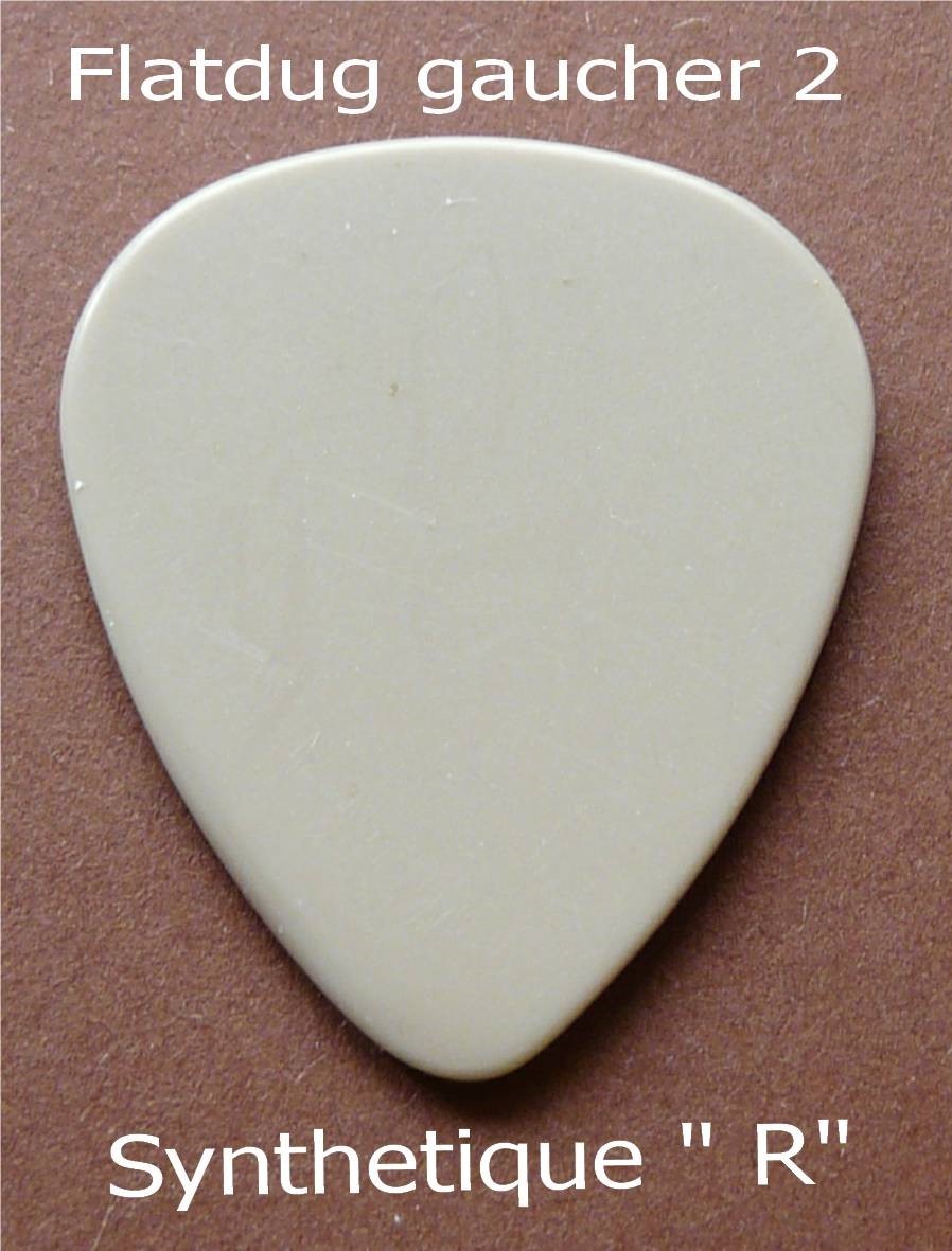 Médiator sans empreinte en Synthétique "R" pour gaucher , comme très très résistant à l'usure - recommandé pour le jeu jazz manouche , Son clair et puissant - 30mmx25mmx2mm. pointe taillés à gauche.
